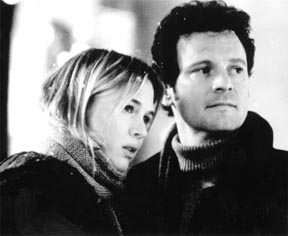RenÉe Zellweger stars as Bridget Jones, here with Colin Firth, in the quirky “chick flick,” Bridget Jones’s Diary.