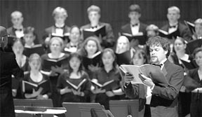 Solo baritone Brian Church of the New England Conservatory took center stage for Ralph Vaughan Williams’ “Five Mystical Songs” at the MIT Concert Choir performance on Friday.