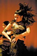 In “What Up Fool!” the dancers wore long sleeve shirts under short sleeved ones and Bjork-ish pigtail buns in the hair. The dance, choreographed by Judi Ramsical, consisted of strong, sharp movements to the music of Ginuwine. Of the six hip-hop styled pieces, “Whoop!” was the most flirtatious. However, Emily Le, the choreographer, did keep with the general trend of strong women and costumed her dancers in army camouflage, with bare midriffs of course.