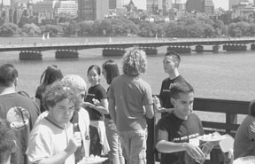 Freshmen rushees enjoy an afternoon roofdeck party on top of Phi Beta Epsilon.