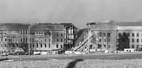 The Pentagon sustained heavy damage after a plane hijacked in Newark, NJ crashed into the building Tuesday morning.