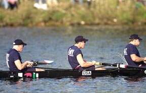 Members of the USRowing team don shirts remembering the heroes of the September 11 terrorist attacks. They won their seventh straight Head of the Charles title in the Men’s Championship Eight.