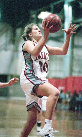 Helana M. Kadyszewski ’03 goes up for a layup during the Women’s Basketball game against Regis College on Tuesday. MIT defeated The Pride, 70-36.