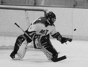 Goalkeeper Matt Van Horne ’02 reaches for the save in the Men's Hockey 6-3 victory against Central Connecticut State Wednesday.