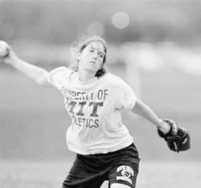 Darcy K. Kelly ’03 pitches during practice on Wednesday. The women’s softball team will be hosting Smith College for a double header at 3:00 p.m. on Friday.