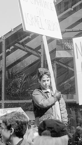 A young boy displays a sign at a rally held in support in of Israel. The rally took place this weekend at Faneuil Hall.