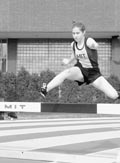 Out on the far end of Briggs field were the hammer and discus competitors. Princess Imoukhuede ’02, MIT’s dominant force in the throws, faced her toughest competition yet at this meet. Finishing in fourth in the hammer throw, Imoukhuede met an All-New England qualifying mark of 144'6". Returning in the discus, Imoukhuede scored more critical points for MIT with her second place, ECAC-qualifying throw at 114'2". Akua A. Asa-Awuku ’03 was MIT’s only other scorer in these throwing events, as she finished the hammer throw in eighth place for a personal record.