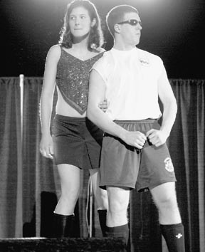 Karissa D. Patterson ’03 and Michael T. Donohue ’04 perform in WILG’s “Coyotes” during the Alpha Chi Omega Lip Sync contest last night in Johnson Athletic Center.