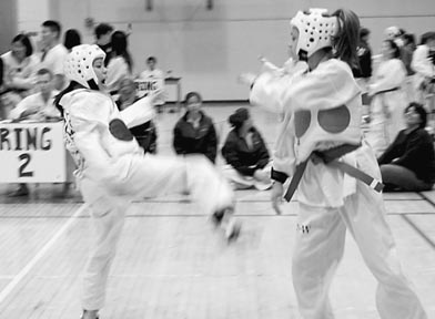 Baochi T. Nguyen G prepares to score with a turning kick in her lightweight match on April 14 at Yale University.