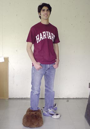 John A. Fries ’03 wears Tim the Beaver’s paw, which he recovered from a Harvard dormitory by posing as a Harvard Crimson reporter.