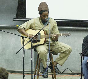 Yami Bolo performs during a reggae concert in 54-100 last night as part of the events leading up to today’s commencement address by World Bank President James D. Wolfensohn.