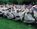 Guests were treated to authentic Boston weather -- the wet and cold treatment. Audience members made the best of the situation, however. Most welcomed the plastic ponchos distributed by MIT Commencement staff.