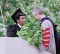 President Vest charged graduates to use their education, talent, and energy to build a healthier world community. Vest also pointed out that cooperation among people of all nationalities and economic backgrounds has been instrumental in the success of MIT and America in the past. He emphasized that continuation of such cooperation would be important to the world’s future.