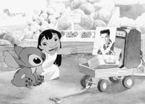Lilo tries to teach Stitch to be a model citizen like The King.