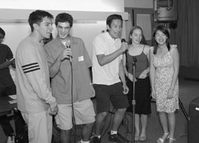 Matthew D. Smith ’06, Robert P. Reyes ’06, Han Xu ’06, Nicole Hollingsworth, and April Tam ’06 rock out karaoke-style to Sir Mix-A-Lot’s “Baby Got Back.”