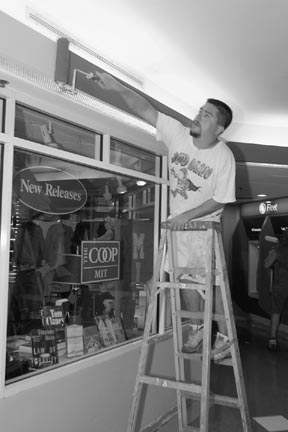 John Pacheco of Hughes Brother Painting puts a fresh coat of paint on the first floor of the Student Center Tuesday night.