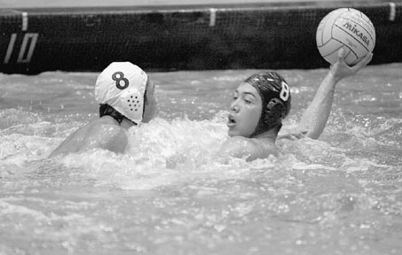 Bruce J. Di Bello ’05 (right) sets up the offense while fending off a Brown defender during Friday’s narrow loss in overtime, 10-11.