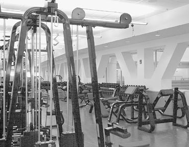 The Zesiger Center’s 13,000-square foot fitness room overlooks the Olympic-size pool on one side and Kresge Oval on the other.