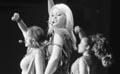 Aaron brought the segment to a screaming halt when he finally emerged, clad in white from head to toe. His superstar-length topcoat was soon thrown aside, revealing more of Aaron’s boyish physique and generating deafening wails of approval from the female concertgoers. Seductively dressed buxom dancers provided an awkward backdrop for songs like “That’s How I Beat Shaq,” a single relating Aaron’s fantasy basketball conquest. Other songs centered on similar issues of concern for pre-pubescent males. Thankfully, the song “My First Ride” does not allude to an act of sexual intimacy. For this popular number, Aaron rolled onstage in a red convertible and sang of his first experience driving a car.