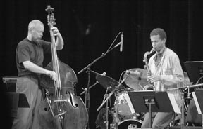 Bassist Dave Holland and his Big Band of jazz musicians accompany tenor saxophonist Chris Potter during his solo in the song “Last Minute Man.” Dave Holland’s Big Band played at the Berklee Performance Center last Friday evening.