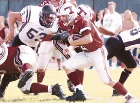 Kurt Josephson ’06 (#84) faces off against the Curry University defense in the midst of his kickoff run. The Beavers were crushed 31-8 by the larger Curry University team on Saturday.
