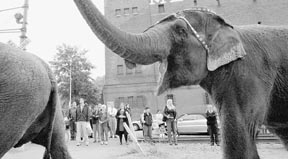 Elephants parade near Massachusetts Avenue in the annual unloading of the Ringling Bros. and Barnum & Bailey circus entourage.