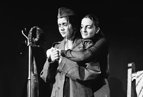 Agnes (Virginia L. Corless ’05, right) puts her husband’s uniform on her housemaid Murdock (Chaitra Chandrasekhar ’04).