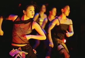 Sherry C. Kan ’04 (left) and Enid W. Choi run in “Tribute.”