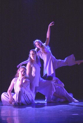 (Left to right) Irene E. Brisson ’05, Taly Dvorkis ’04, and Michelle S. Machon ’04 artfully pose in “Silent All These Years.”