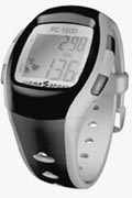 The PC1600 HRM is a new device that gives you all sorts of statistics about your heart rate and work out. The system comes in two parts: a pretty ugly-looking watch on your wrist which acts as the user interface and displays exercise statistic readouts, and the heart rate sensor that you strap around your torso below your breasts. As you workout, the device keeps track of your heart rate, monitors zones of activity, calculates calories burned, etc. It has quite a bit of functionality beyond that of the HRMs available through the handles on most aerobic exercise equipment.