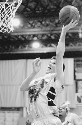 Michael W. D’Auria ’06 goes up for a layup during the men’s basketball game on Tuesday. MIT defeated Newbury College 71-65.