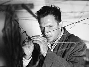 Spider (Ralph Fiennes) attempts to reconstruct his life in a little room.