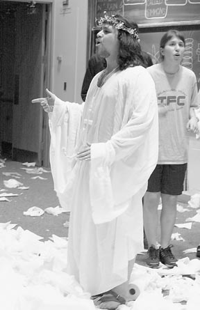 Daniel Bersak ’03 solos during the Chorallaries final encore (given at the unusually early hour of 12 midnight): “Beastiality.”