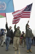 “These flags are meant to represent the genocide that we believe is being committed against the Iraqi people,” said Laura Rodriguez ’03.