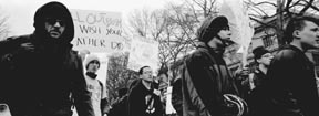 Protesters make their way from 77 Massachusetts Ave. to the Harvard Bridge, from which they proceeded their procession to Government Center.