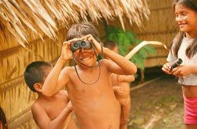 5:00am and all is quiet on the Amazon river. The group woke up early one day in order to go bird watching.