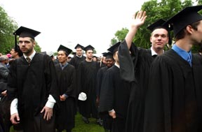MIT faculty and staff, members of the Class of 1953, and more than 2000 soon-to-be graduates file on to Killian Court.
