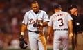 Pitching: Odalis “O-dog” Perez of the Los Angeles Dodgers. Perez pitched a gem to slow the Dodgers’ bleeding. Perez pitched eight solid innings striking out five and allowing just three hits, the first one not given up until the seventh inning to new D-back Shea Hillenbrand. Perez won his first game since May 23rd and allowed the NL’s worst offense to squeak by with another notch in the win column.