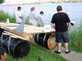 One of the confiscated rafts, “Couchamaran,” was built in Boston by a group led by Scott Johnston ’02, a former student and East Campus resident. The other, known as “Caddyzoo,” was first built last week outside East Campus by several students including the dormitory president, Matt K. Malinowski ’04, and was modified and rebuilt at Johnston’s home in Boston on July 3 and 4. Both hold about four passengers, are powered by paddles, and were used along with several other student-built rafts to view the fireworks on July 4.