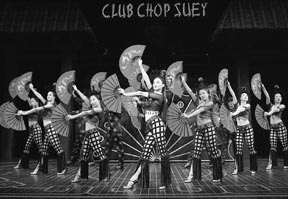 The seductive Linda Low (Sandra Allen) leads a dance at Club Chop Suey, a Chinese Opera house cum American-style cabaret in Broadway’s Flower Drum Song.