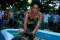 During the opening ceremonies, Orientation coordinators led freshmen through a series of games. In one activity, four freshmen were called on stage to participate in an obstacle course after spinning around seven times. In another activity, freshmen performed unusual acts, such as cartwheels, spinning books, and tying cherry stems in knots with their tongues, to earn Klondike bars. For his Klondike bar, David W. Rush ’07 impersonated Gollum from Lord of the Rings. For his efforts, Rush received a standing ovation.