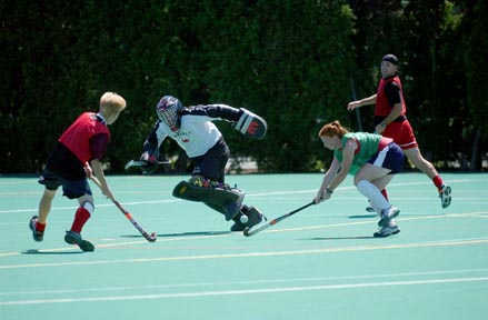 Members of the Minutemen Field Hockey Club scrimmage on the turf Sunday morning. The club will play against MIT Varsity team members on Wednesday evening.