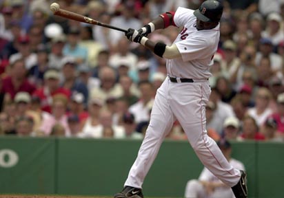 Red Sox designated hitter David Ortiz hits a double in the fifth inning against the Seattle Mariners at Fenway Park on Aug. 25, driving in two runs in a four-run inning. The Red Sox won 8-1.