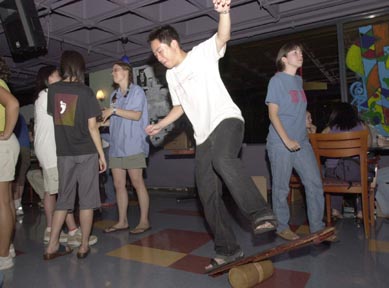 Donald H. Wong ’07 demonstrates his talent with a bongo board Tuesday evening at a rush event held in the Student Center.