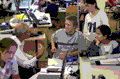 TEAL is offered in a studio setting where students learn through hands-on activities. Nine students, in groups of three, sit at desks with laptops and lab setups, and each student has a Public Response System apparatus. PRS is an automated system that allows students to respond to multiple-choice questions. The responses of each student can be monitored by the professors. Projection screens are set up around the room, and professors teach using PowerPoint.