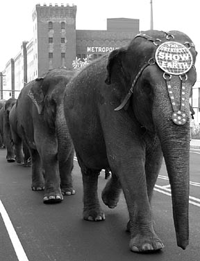 A herd of circus elephants marches down Vassar Street towards downtown Boston Thursday morning. The Ringling Brothers and Barnum & Bailey circus will be at the Fleet Center through Oct. 19.
