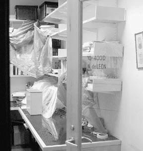 Room 10-400D suffered the worst damage in Sunday night’s flood in Building 10. A broken coil in an air handling unit caused flooding in all nine floors of Building 10.