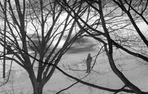 A student waits to cross Massachusetts Ave. Monday night. Snow, which caused the shutdown of the Institute today, will continue until mid-afternoon. See weather report, page 2.