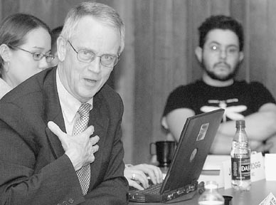 MIT President Charles M. Vest addresses the Undergraduate Association Monday evening regarding his reaction to the “ghetto party” e-mail.