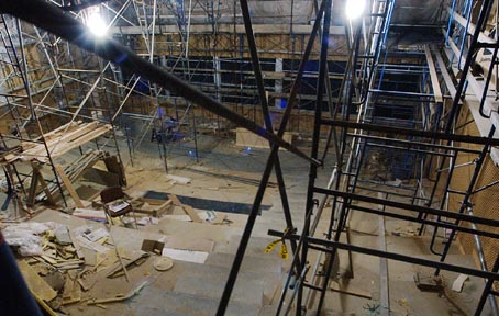 One of the largest lecture halls in the Stata center has five columns of blackboards. It is comparable in size to 10-250. The Stata center is due to be complete in the spring of 2004.